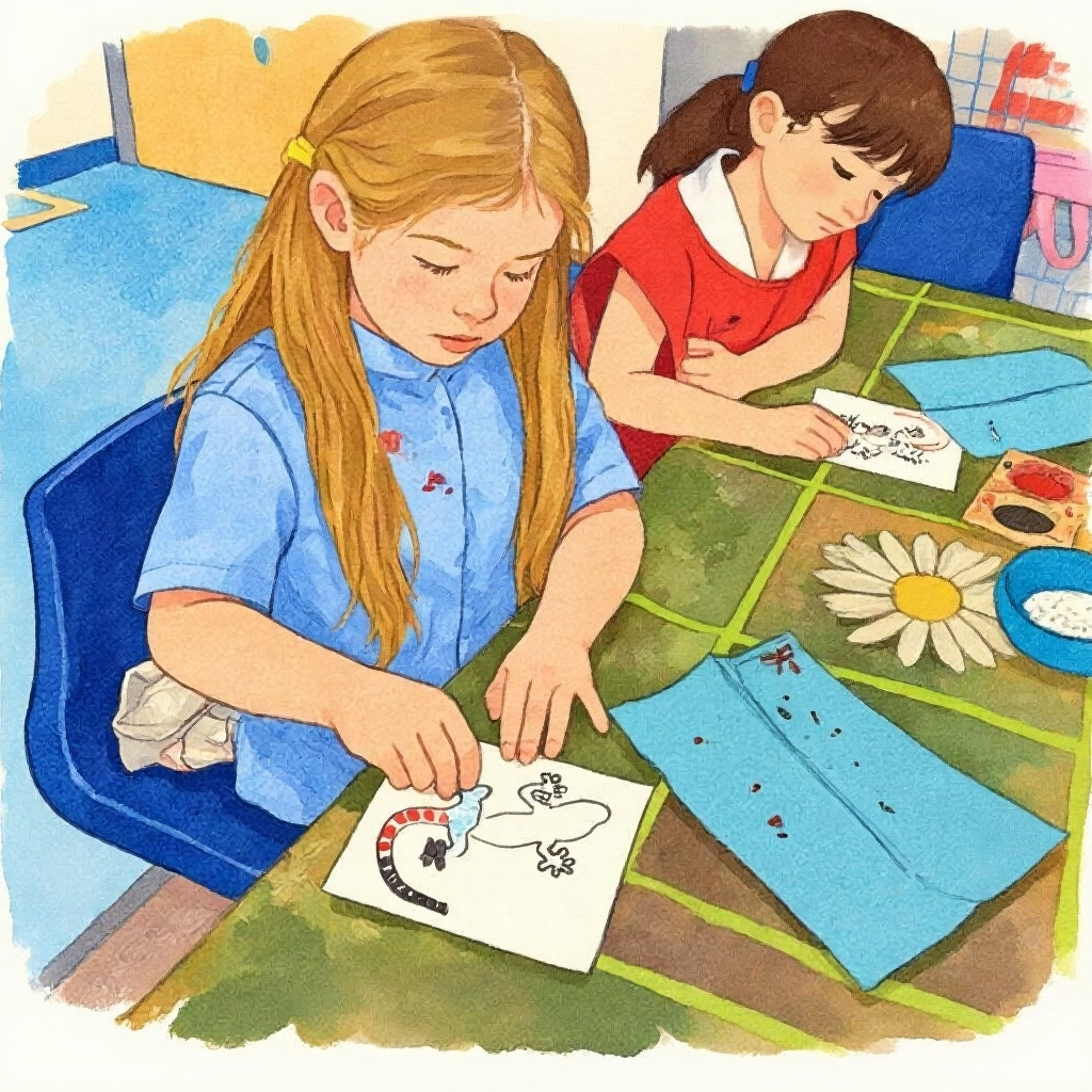 - Show different emotions in their drawings and paintings, like happiness, sadness, fear, etc.